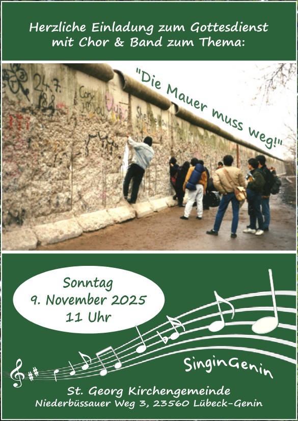 Freuen Sie sich auf den Gottesdienst am 9. November, dem Gedenktag des Mauerfalls,